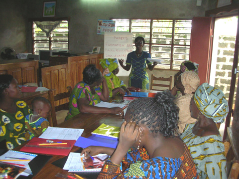 The Director of VOLDEB (Volontaires du dévéloppement à la base), Mr Clément Gigo Sagbohan, explains: “We have an extensive programme centred on health topics which we keep going with few resources. We organise meetings for women in churches, in schools, for community groups or in the offices of our NGO, and when the subject touches on sexuality or HIV/AIDS, we have found the CALLED TO CARE books are an authoritative and essential aid for the facilitators to help sweep away prejudices, raise awareness, advise and educate. Due to the huge need for this material, it became clear that we needed to find a system for each literate person involved to use the copies we had to their full potential. So we have a system of ‘book rotation’, and we also make photocopies”.