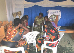 Les réponses aux questions ont montré l’existence d’un grand besoin de formation sur le VIH/SIDA au sein de l’église. Trois personnes seulement ont répondu parfaitement aux questions ; les autres ne connaissaient qu’une seule voie de contamination, à savoir les relations sexuelles, et pensaient qu’une personne abstinente ne pouvait jamais attraper le VIH. Cette activité a été très bénéfique pour le groupe car non seulement les personnes étaient mal informées, mais leur manque d’informations était à l’origine de nombreuses actions de discrimination et stigmatisation à l’égard des personnes séropositives. Vumilia Esperance, elle-même séropositive, a témoigné de la discrimination et de la stigmatisation manifestées envers son enfant lui aussi séropositif. Quand un voisin chrétien a vu comment cet enfant avait grossi, il lui a dit que les médicaments antirétroviraux (ARV) l’avaient fait enfler.
