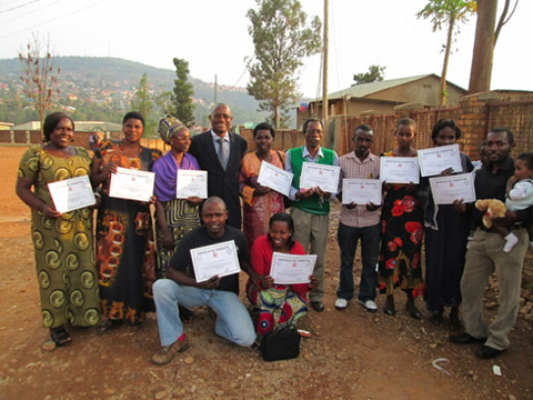 Le Révérend Habimana Elie, lorsqu’il était Coordonnateur National, RWANERELA+, avec des participants à l’atelier SE DÉVOUER AUX AUTRES organisé en août 2013 à Kigali afin de former les chefs religieux pour l’amélioration des communications au sein de la famille.Révérend Habimana Elie